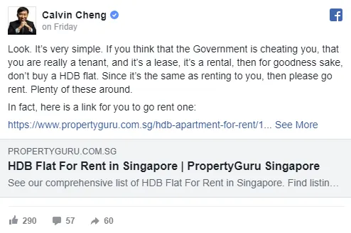 Many people have been furiously commenting online and saying that HDB home owners are not owners, they’re tenants because HDB flats are sold under the HDB leasehold arrangement. Such arguments apparently have been gaining traction since National Development Minister Lawrence Wong (who used to be our MP!) said HDB will not renew the leases of all old HDB flats under the Selective En-bloc Redevelopment Scheme (SERS). Apparently only 5% of HDB flats will benefit under the scheme.