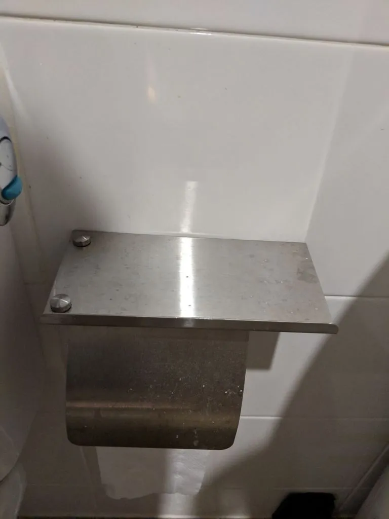 There’re some problems with the toilet roll holder, though they’re not major. The whole thing is quite flimsy, especially for the stick that goes through the toilet roll. There has been some minor rusting, but we wiped it away. The stainless steel surface attracts a lot of water marks, but we can’t control that. It’s also not perfectly parallel to the ground, but we’re not complaining.